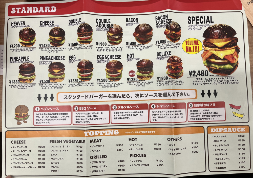 ボリューミーで種類が豊富なハンバーガーがそろっており、ボリュームNo.1の「ハングリーヘブンスペシャル」やお店自慢の「チーズチーズチーズ」など、実際にスタッフもいただきました!