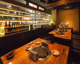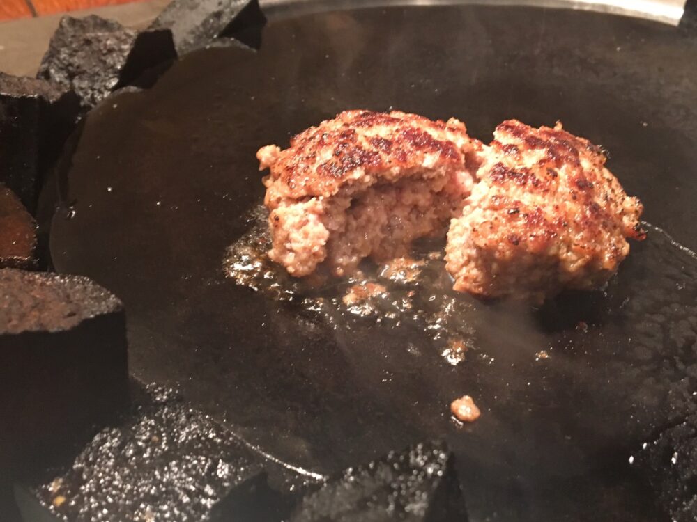 テーブルの上に石を置いてあって、石で焼くスタイルです。