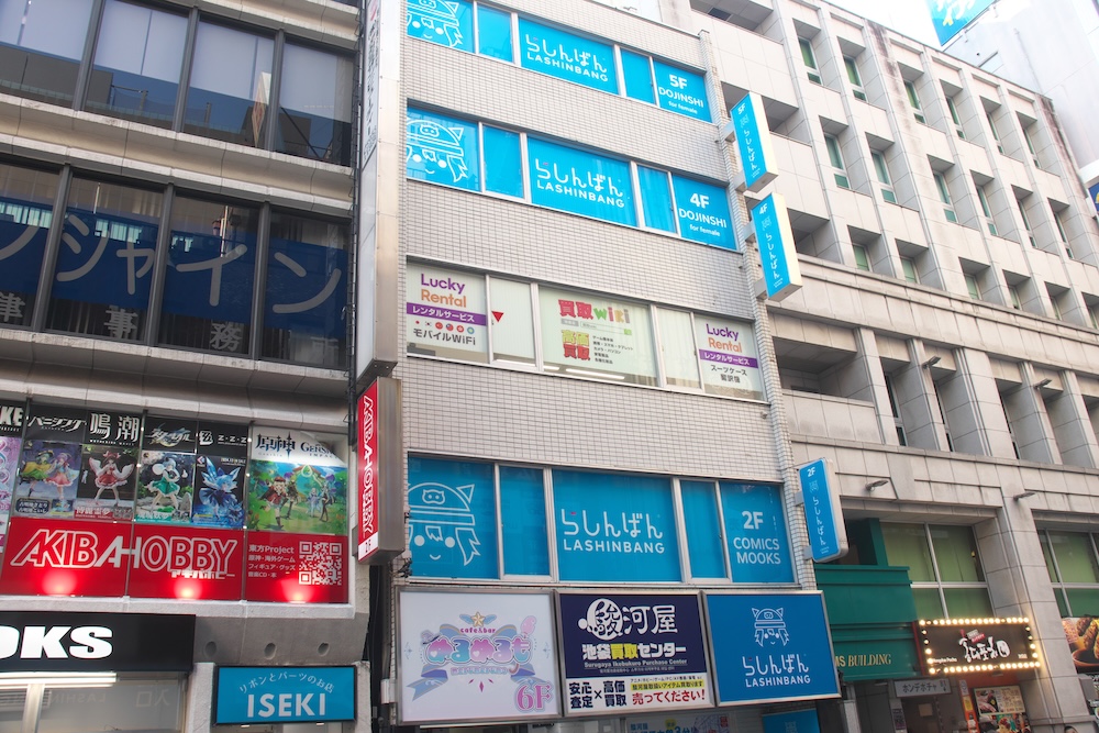 池袋本店女性同人館は池袋駅東口を出て、中池袋公園近く、アニメイト池袋本店向かいのビルです。
